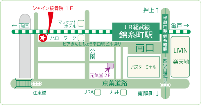 ★アクセス★ 当院へは、JR総武線(錦糸町駅)/半蔵門線(錦糸町駅)が便利です